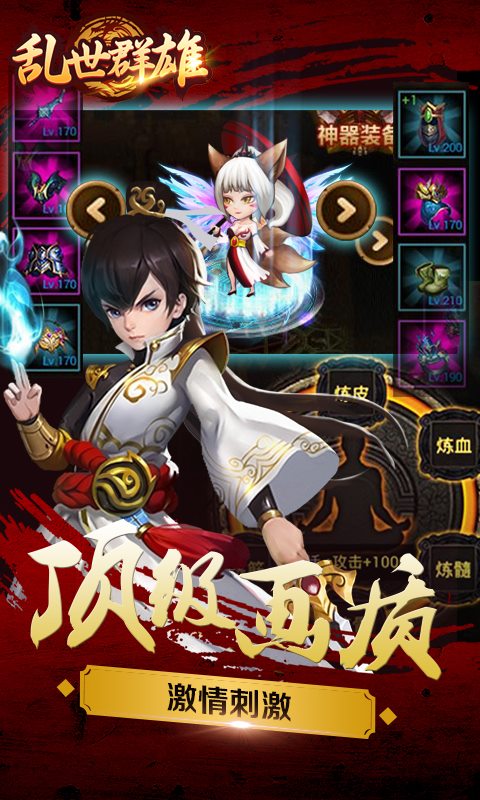 前所未有的屏幕打击感构造全新的RPG手游,超酷炫技能展示,还有更多新奇玩法在等你,公平竞技全民PK,一切你想不到的,都在《乱世群雄》!华丽的特效以及酷爽的打击感,能够体会到拳拳到肉刀剑相击的每一分触感让你欲罢不能。